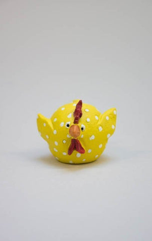 Morsomme høner i håndlaget svensk keramikk med prikker på til påske eller som kjøkkenhøner hele året. Finnes i fire farger, gul, sort, hvit og gull og tre størrelser, stor, mellom og liten! Klukk Klukk Klukk